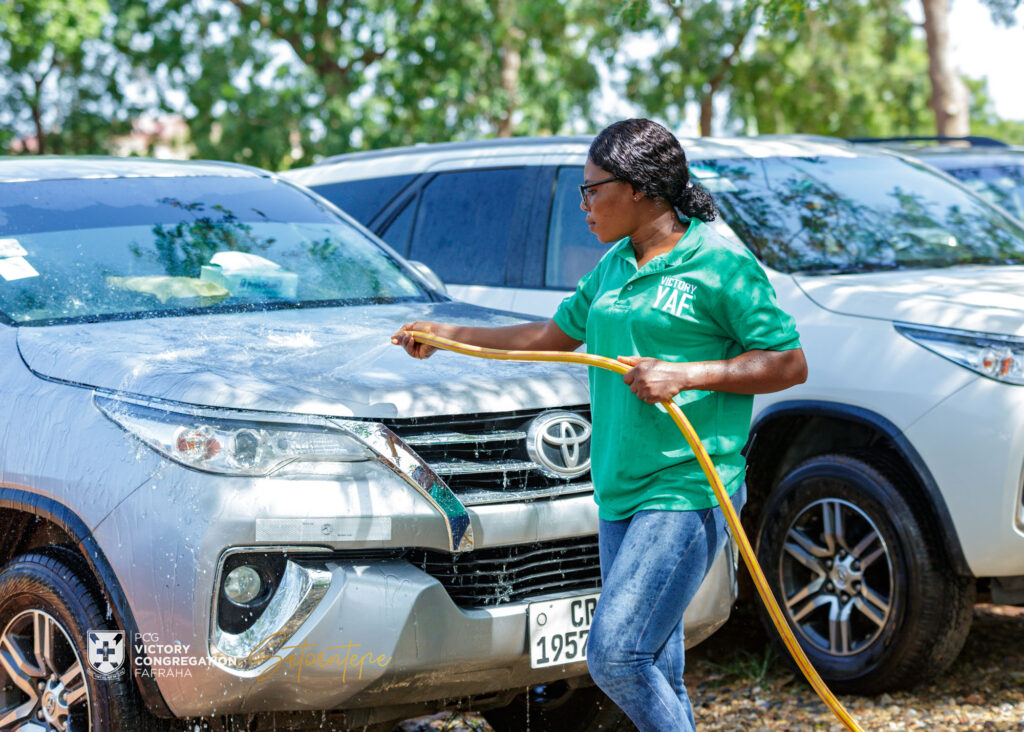 YAF Week 2024 Car WashBy Isaac Akoto / 16/04/2024 Date: 15/04/2024 Venue: PCG. Victory Congregation, Adenta Fafraha Photo Credit: Setor